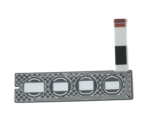 The combined structure of capacitive film switch is divided into three parts, one is flexible film switch, the other is capacitive touch screen, the other is PCB electronic board. All three are combined to form a complete capacitor switch. Flexible film switch is generally made of PET or PC film, because they have good soft performance, stable switch structure, feel good. The main transparency is high, will not affect the user to view the screen display information. The capacitive touch screen works by using the human body's current induction. Its structure is four layers of composite glass screen, the inner surface and the middle layer are coated with a layer of ITO, the middle layer ITO coating used as the working surface and four corners, lead out four electrodes. PCB electronic board plays a major role in products, connecting current, connecting circuits, transmitting signals. It can also control the resistance, voltage and current of the product.